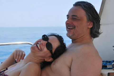 Et puis, sur la plage, Martine et Olivier, rencontrés en 2009, qui naviguent à bord de TOMBOUCTOU, sans doute un des plus jolis "batôs-copains" que l'on connaisse, et pas recroisés depuis. Je vous mets des photos de l'époque car comme on s'est revus à la plage, j'avais pas le Nikon.
