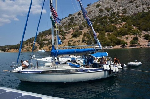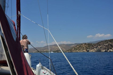 Le vent n'est pas favorable à rejoindre Spetses, ce qui était notre intention. En revanche, on a presque tout fait à la voile.