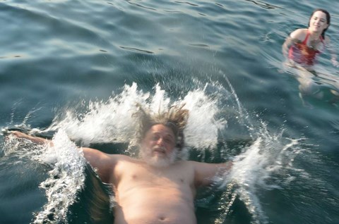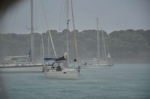 Depuis le 25, on n'a pas bougé, laissant Troll éviter dans les rafales, profitant du merveilleux beau temps, néanmoins, malgré le vent. Bon y'a bien les skieurs nautiques pour nous agacer, mais c'est pas trop ch...t ! Juste pénible quand il leur prend l'idée idiote de passer à 3 mètres des voiliers au mouillage. Là, ça gueule un peu... Y'a tant de place dans la baie ! mais non, c'est plus rigolo de tenter de faire de la viande hachée avec les baigneurs! Pffff! Fulmar, lui, est reparti changer d'équipage.