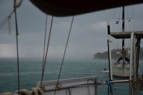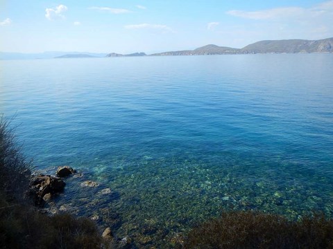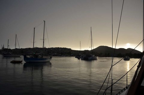 Jeudi 18: Retour à notre cher mouillage de Galatas, après une nav' de 18 milles sans un souffle de vent. Quel contraste avec la semaine passée avec Anne et Tof où nous n'aurons mis le moteur que pour mouiller ou relever l'ancre !