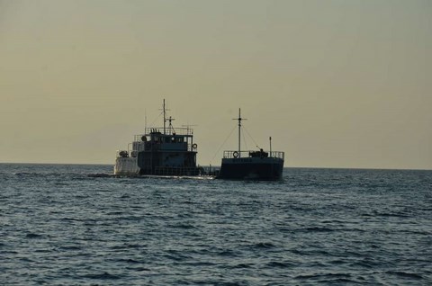 A signaler qu'un hors bord hyper rapide viendra nous surveiller pendant notre "contournement"... Mais, et heureusement, faire le tour n'est pas interdit, et il s'éloignera dès qu'on se sera....éloigné !