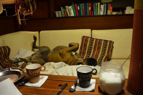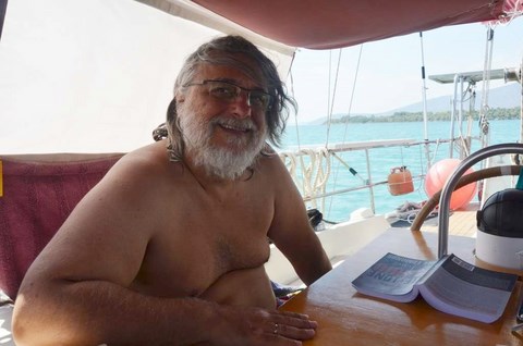 Depuis, nous avons rencontré, avec bonheur, l'équipage du mauwen, un cata trollonaute (j'ai pas de photo) et puis, l'équipage de Waruna, un voilier en acier, qui nous avait filé des oeufs, il y a une quinzaine de jours. Comme leurs sourires sont éclatants et qu'ils ont l'air si gentils, on les invite à bord.