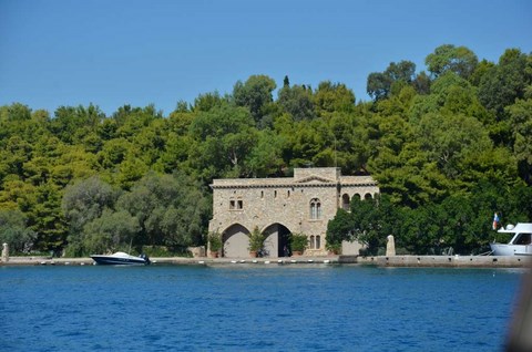 Quant à nous, il nous faut, sans urgence, remonter sur Poros. Depuis que nos amis ont quittés le bord le vent du Nord souffle fort fort fort. Et puis, il commence à se calmer. Alors, le mardi 16 Aout, on lève l'ancre. On commence par contourner l'île privée de Koronisa (Google ne veut pas nous dire le nom de l'armateur qui la possède) qui ferme la baie de Khilada.