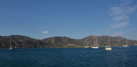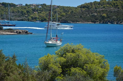 Au matin, Fulmar monte à l'ouest de la baie de Poros, histoire de chercher protection du fort vent de nord qui va souffler toute le semaine.