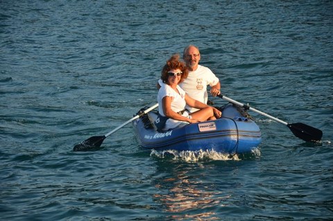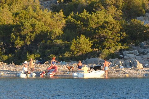 Ensuite, donc le Mercredi 17 Aout, on va faire des courses à Ermioni. Les Jad nous y retrouve et tous ensemble, on part mouiller à Dokhos, au moteur cette fois, car il n'y plus de vent du tout ! Le soir, c'est soirée crêpes à bord, à la grande joie de Philippe. Le lendemain midi, on déguste de 'l'angus", une excellente viande de boeuf, sur Jad. COmme la nuit fut particulièrement douce, l'ensemble constitua une escale succulente en tout point :