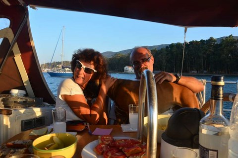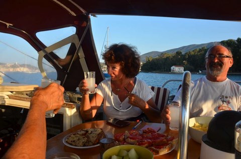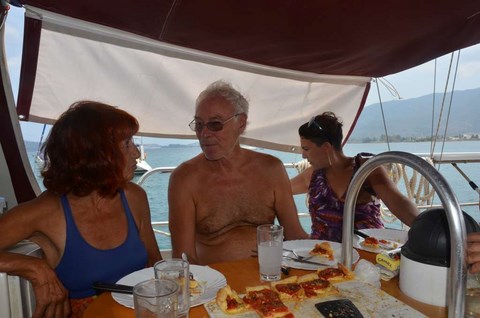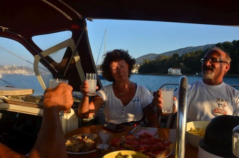 Lundi matin, Les Jad nous ont rejoints au mouillage de Vidhi. Au programme, repas sur Jad, puis tour de Méthana en limo, puis repas sur Troll. Triste à mourir ! Sauf qu'on était pas tristes et qu'on est pas morts !