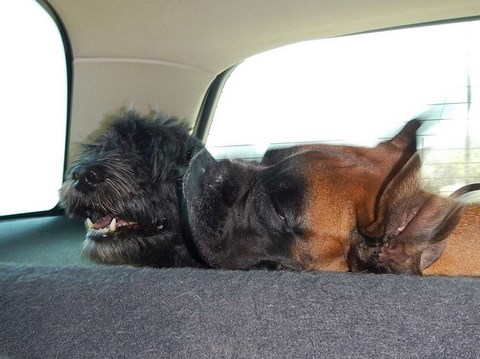 A l'arrivée, vers minuit, Françoise et Javotte m'attendent au parking. Elles me font la fête, c'est pas si souvent que nous sommes séparés, n'est ce pas. Et pis, j'suis-t-y pas quasi un héros, quoi ?