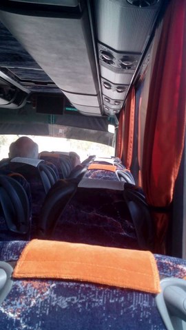 Pas grave. Finalement le taxi rattrape le bus, effectivement garé. Le chauffeur, gentiment, s'excuse et me dit qu'il n'a pas bien compris Françoise ( elle non plus!) et me voilà installé, à bouquiner et à regarder le paysage devant moi. Magnifique: