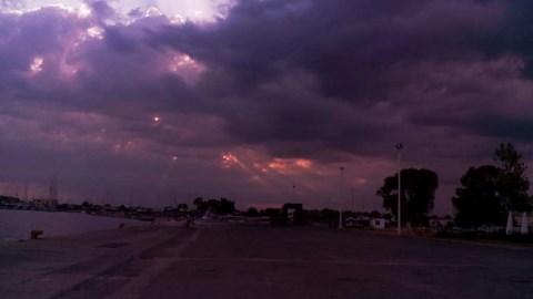 Une heure d'attente à Isthmos et me voici en route pour Patras, où j'arrive avec une bonne heure d'avance sur les copains. Du coup, je me fais 3 ou 4 km à pied en avançant vers le port, ça dégourdit les pattes et c'est bon pour la surcharge pondérale ! On est en contact téléphonique permanent avec Robert, mais on trouve le moyen de se louper! Faut dire, j'avais chaud (temps très orageux) et je me suis mis à l'ombre. Du coup, je n'ai pas vu passer la voiture (pourtant, je la guettais!) et eux ne m'ont pas vu.