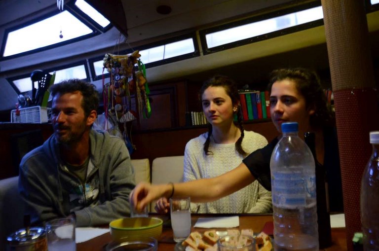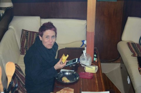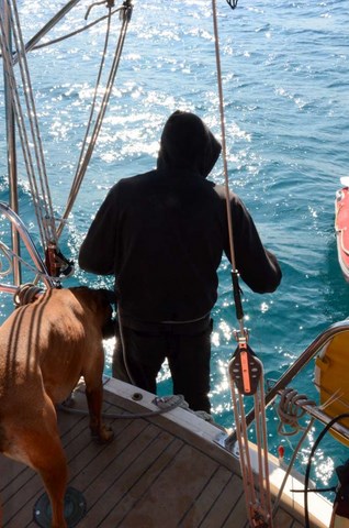Nuit calme, arrivée de Philippe dans la journée. Mais, une toute petite houle ( mais toute petite) nous a inquiétés pour la tranquillité de la nuit à venir ( à tort, du reste!)