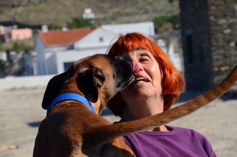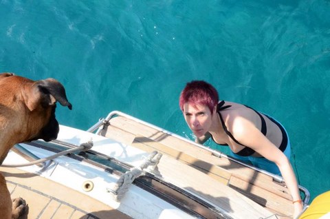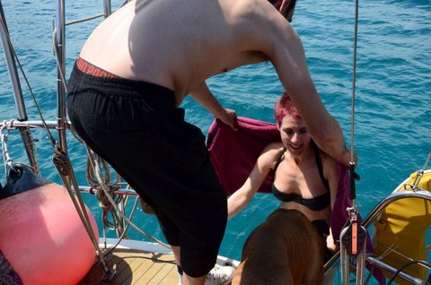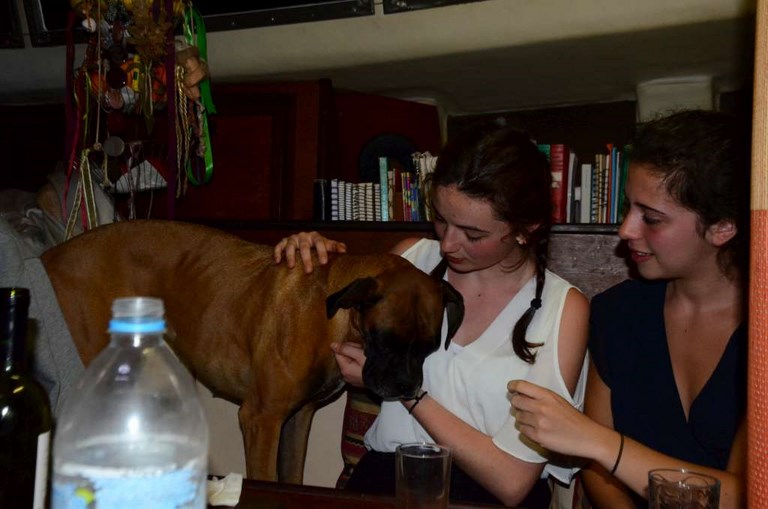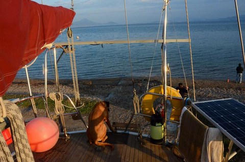 C'était bien joyeux, au point que j'ai eu beaucoup de mal à redescendre l'échelle du Sherpa pour rejoindre la caravane lors de l'apéro chez eux, la faute à 4 ouzos trop bien tassés! Le moins que l'on puisse dire, c'est que Javotte a eu son content de caresses:
