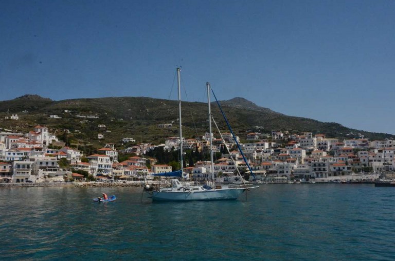 Depuis, nous avons encore bougé. Nous sommes sur Andros, depuis Lundi après midi, au pied du joli village de Batsi. la nav' a été sauvage!