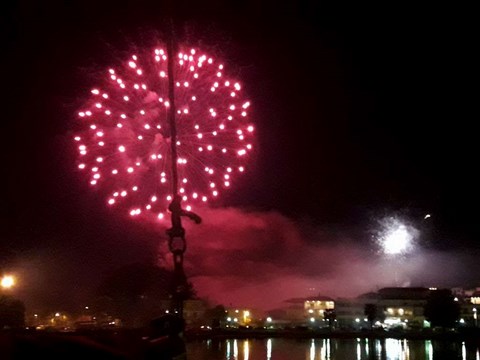 La nav' a été superbe. Roland nous attendait pour nous prendre les amarres. Et nous nous sommes tranquillement installés au quai Nord....pour 24heures seulement, puisqu'un concours de pèche a conduit les autorités portuaires...à faire dégager les bateaux. Ils l'ont fait très gentiment, du reste. C'est donc une photo de Troll au quai Ouest que vous trouvenrez ci-dessous