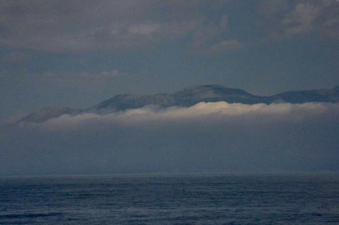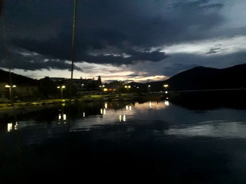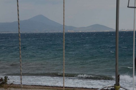 Bien secoués nous fûmes dès qu'Evia ne nous protégeait plus du vent du Nord (25 noeuds constants. maniable) . Comme d'habitude, les photos prises sont totalement impuissantes à rendre compte du shaker ! Il faut dire aussi qu'aux pires moments, on s'aggripe, on ne prend pas de photos!