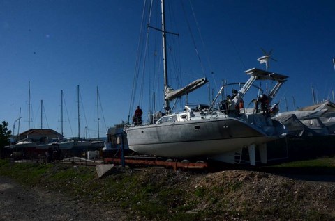 Du reste, on est à l'eau depuis hier ! On a bu quelques coups, aussi, puisque, printemps oblige, les plaisanciers commencent à affluer sur le chantier.