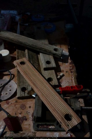 Après la plateforme ( merci encore Robert!), nous nous sommes attaqués ( Françoise l'inox, moi le bois et la visserie) à l'échelle de bain, qui avait bien besoin d'un ptit refit:
