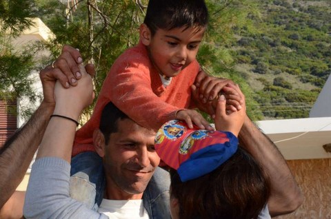 Je m'appriche donc d'une table où mangent une belle et super souriante famille pour leur demander si une des tavernas serviront de l'agneau grillé ce soir !