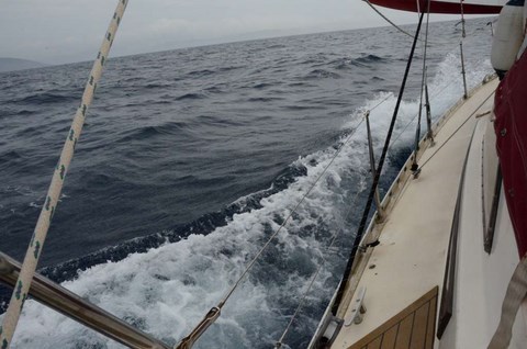 On avait été prévenus: Oui, on savait que le passage entre Karistos et Andros allait être sportif, la faute au conflit " courant contre vagues". On sait aussi que, le lendemain, cela aurait été plus cool. Mais le besoin de changer d'air était plus fort.
