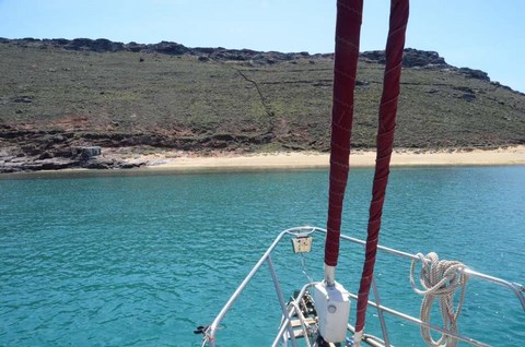 Aprsè 22 milles, nous voici donc à l'entrée de la baie de Voufalo. C'est toujours aussi sympa et du goût de Marion, dont le sourire en témoigne: