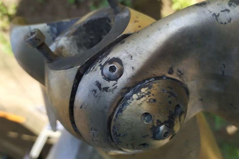 Bon dieu, je m'en suis vu pour desserer, sans rien abimer, les deux graisseur de chacune des pales au total de mes 2 hélices ! 8 vis au total ! Ca parait rien, mais ça m'a rpis du temps !