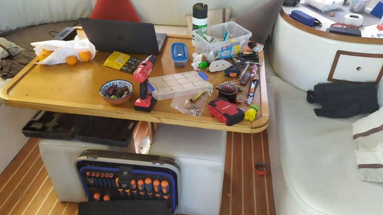 Alors là, ça a été la merde ! Quand j'ai essayé de brancher mes jolis compteurs d'heures, je me suis aperçu que je n'avais plus de courant dans le tableau de bord babord ! Zéro, rien, nada ! Putain d'air marin !