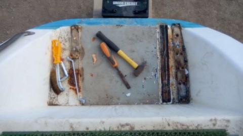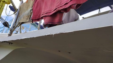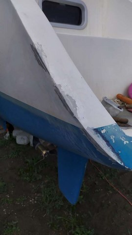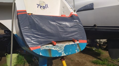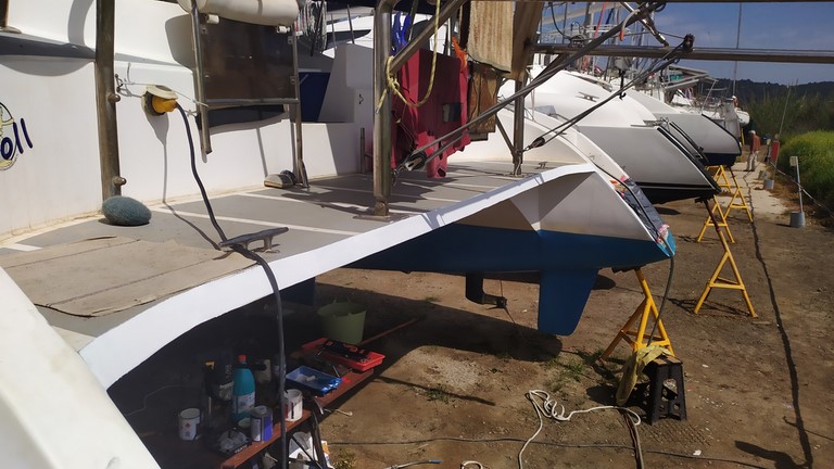 Fin Mars, donc, j'entrepris de réparer les accros sur la jupe babord et sur la plate forme arrière :