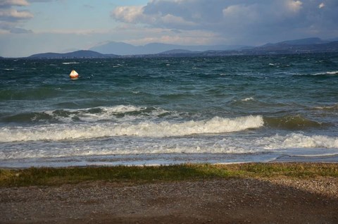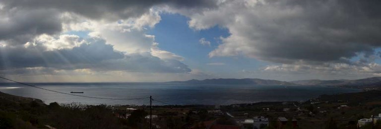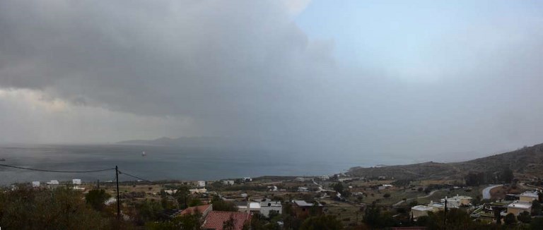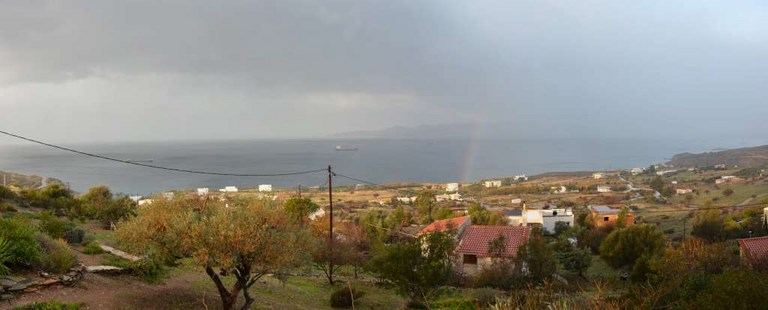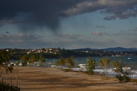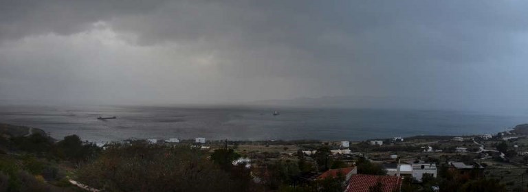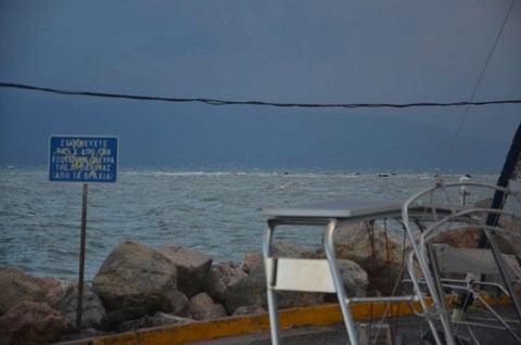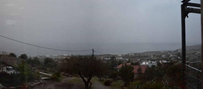 Du coup, météo pourrie ou pas, Corbi nous a emmené (en 1ère classe) jusqu'à chez Roland. Là-bas, à Karystos, ce sont de véritables trombes d'eau. Visiblement, le père Noël a tiré la chasse ! Et comme Karystos est au pied de la montagne, ça dégouline en torrent un peu partout!