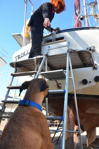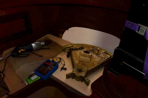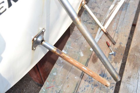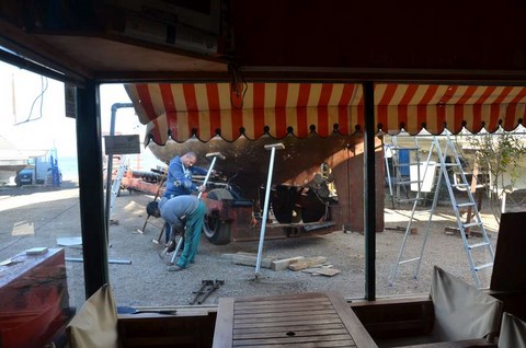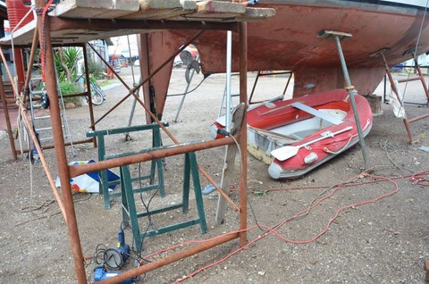 On va la ramener en France au fond du coffre de Corbi. Il faut dire qu'un ami cher, particulièrement serviable et généreux, ami que je ne nommerai pas, de peur que la modestie de Robert puisse en souffrir, nous a proposé de refaire l'entourage de la plateforme. Comme, avec l'aide de Gilbert et de super-connard, il avait déjà reconstruit notre safran ( voir ICI ), on peut lui faire toute confiance pour ne pas être précipités à la baille même en montant à plusieurs dessus.