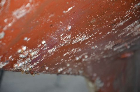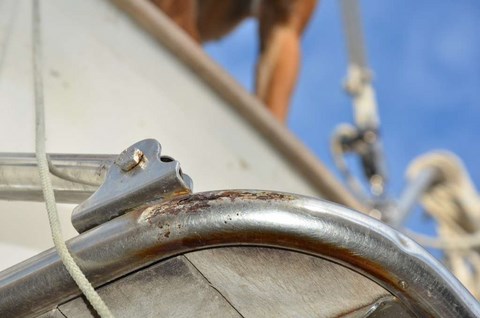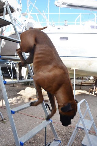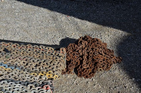 Le tas de rouille, ce sont les 30 mètres qui sont toujours immergées au mouillage. Et comme on doit faire au moins 200 jours de mouillage par an, c'est peut-être normal ! Ou alors, c'est de la chaine de merde, je ne sais pas. Ce qui est pénible, c'est qu'elle n'est absolument pas usée, juste complètement rouillée superficiellement ! Et c'est très pénible à la remontée de l'ancre : ça fout de la rouille partout!