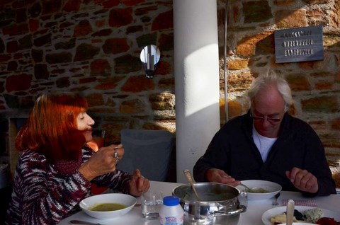 Non non, c'est pas qu'on est complètement crétins (quoique!), c'est que c'était prévu de puis longtemps qu'on aille passer Noël à Karystos avec l'ami Roland.