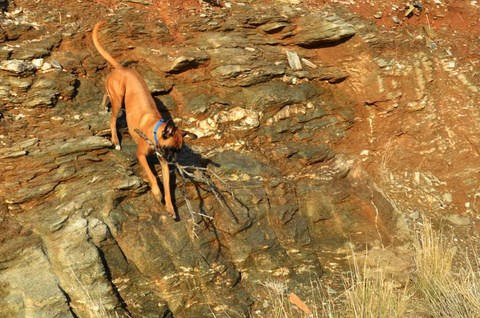 Venons en maintenant à l'ingénieux dispositif que votre serviteur à imaginer pour permettre à sa petite chienne d'aller trotter à terre à loisir . Un simple escabeau (acheté l'an dernier) sur une série de palettes: