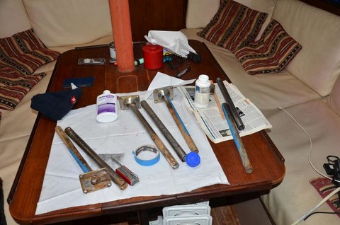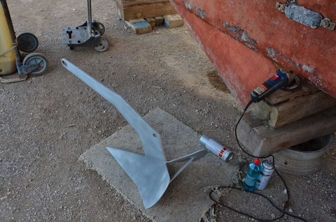 Pendant que j'y étais, galvanisé par ma forme olympique, j'ai traité au zinc l'ancre ( galvanisée aussi, du coup!) qui en avait bien besoin.