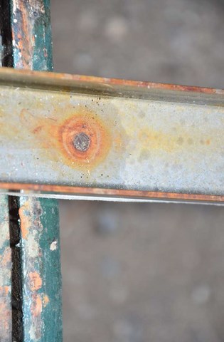 Il faut dire que l'inox qui la constitue a pas mal souffert de l'usure du temps et que des coulures de mauvaises augures débordent de ses fixations :