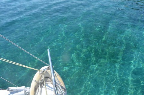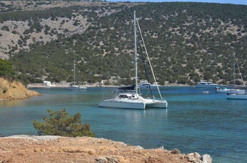 Et puis pas encombré, hein ! Au maximum, nous fûmes 4 bateaux. Et comme la taverna ( bonne) fait aussi mini market, je crois bien qu'on pourrait moisir ici, sécher sur place, nous fossiliser, à votre choix !