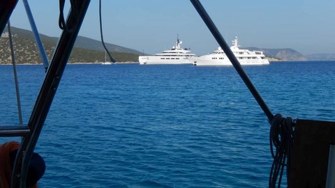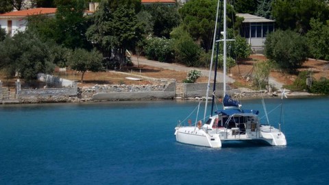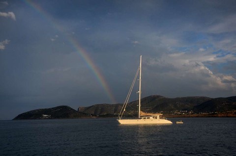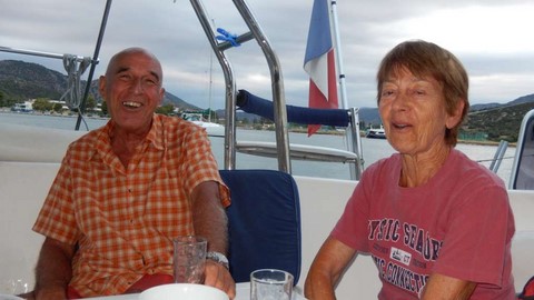 Le 12, retour à Poros où l'on retouve Jean et sa Katie. Ils viennent boire l'apéro à bord et nous emmènent manger une gyros et une glace à Poros. Pas de photo, mais un bien bon souvenir de plus.