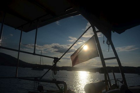 A propos de houle, je peux vous dire que c'est super d'être en cata, de bouger un peu, mais résolument beaucoup moins que les pauvres monocoques qui se balançaient dans tous les sens ! Notamment celui de Jean et Jeaninne, qui nous ont invités à leur bord, mais à qui ont a proposé d'amener leur apéro à bord de Troll, histoire qu'ils se reposent un peundes mouvements de leur petit voilier. Ils hivernent à Evoiko? Et c'était super de les avoir à bord :