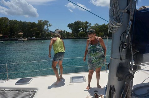 Lundi 13 juin : il re-fait beau ! Youpi ! Le bateau est tout propre. Il est temps d'aller retrouver nos amis de DEBER en baie de Corfou.