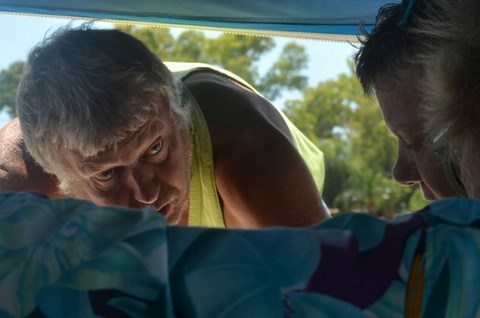 Une petite inspection du moteur de Troll par Gilbert, histoire de partir rassénérés par l'état sans problème du berlingot, et nous voilà en nav'.