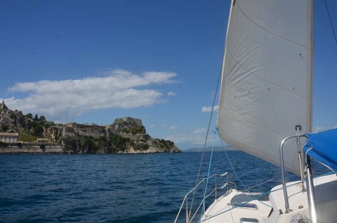mardi 7 juin : La météo change! Le vent va passer au Sud ! Du coup, changement de programme, alors qu'on devait desendre doucement vers Prévéza, décision est prise par le capitaine, c'est à dire, moi, votre serviteur, de remonter sur le Nord de Corfou! On en profite pour aller visiter un mouillage de nous inconnu, ormos Valtou. Hélas, le vent est aux abonnés absents et c'est le moteur qui préside à notre déplacement.