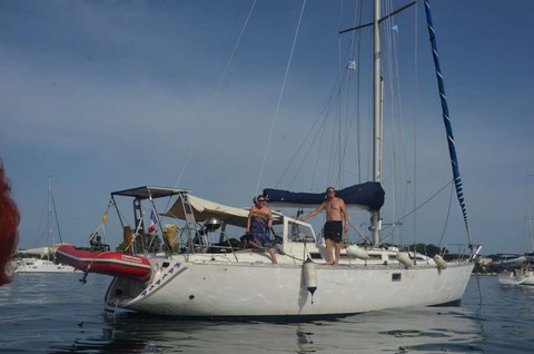 Aussitôt nous voici à leur bord et on entame les papotage, commentaires et autres bricolages. le soir, ils nous rejoignent au mouillage (vachement plus calme que le quai, bondé en cette période!)