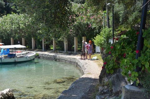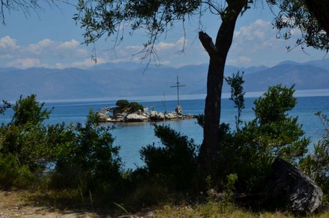 22juin : On a quitté nos copains "catamareux" à Pétriti. Pas envie d'aller à Mourtos ou à Parga, sans aucun doute bourrés de monde. On est donc retournés à Agios Ioanni qu'on avait tant aimé en 2008. Et on a bien fait car, quand nous sommes arrivés, on y était absolument seuls. Ensuite, il est arrrivé...deux autres voiliers...la foule ! Il a quand même fallu que, dans cet havre de paix, le plus luxueux des deux arrivants ( un voilier de plus de 60 pieds) fasse du ski nautique jusqu'à 9h le soir et dès 8h30 le lendemain matin ! Grrrrrrrrr !