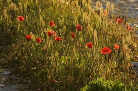 Après avoir tenté de crocher dans une petite crique, au nord 'Agios Stefanos, qui nous faisait bien envie, nous voici bientôt à Soukia, sur le coté nord d'Ormos Galiates. C'est beau, grand, et tranquille, même si un énorme machin y trône, en plein milieu (il ne nous gènera aucunement). Je fais une grande balade quasi crépusculaire avec ma toutoune, pendant qu'à bord, l'équipage prépare le repas du soir. La lumière est belle. J'en profite. (les deux premières sont pendant la nav' entre stéfanos et soukia)