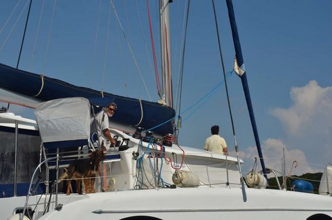 23 juin : Pas beaucoup de vent pour aller à Prévéza. Impossible de crocher devant les chantiers. Pas assez de place. Du coup, on va, comme d'hab' au mouillage du port de pèche. Puis, aussitôt, on emmène Javotte chez le vétro pour vaccinations annuelles ( et pour parler d'un petit problème d'incontinence qui dure depuis un bon moment!)