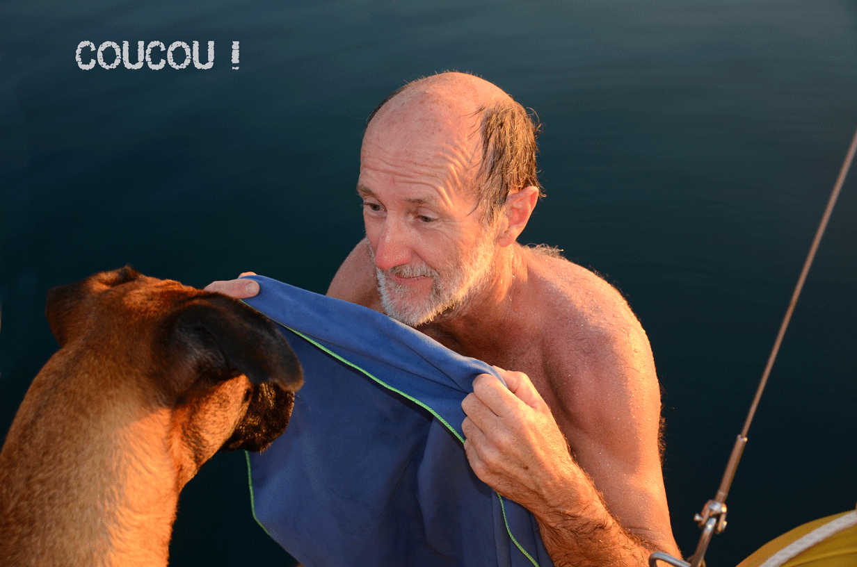 Tout d'abord le matin, Gilbert , sur Gadjo , qui vient me voir (Françoise et Javotte sont à terre, en balade avec les Kairos) avant 'appareiller. Ces quelques minutes m'ont laissé un gros goût de "trop peu"!