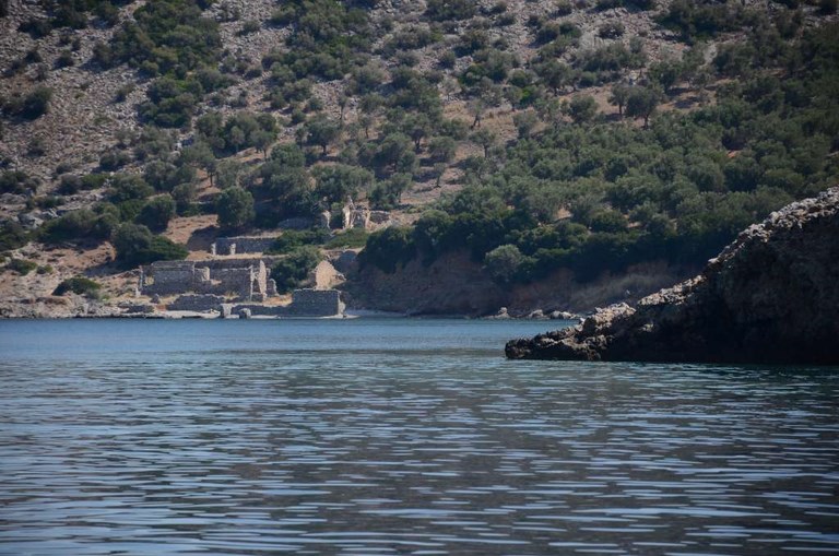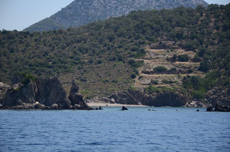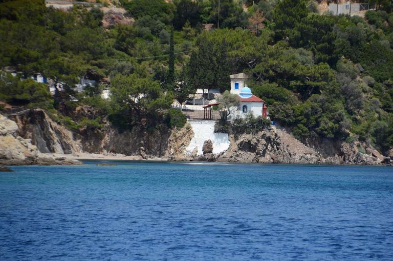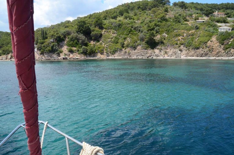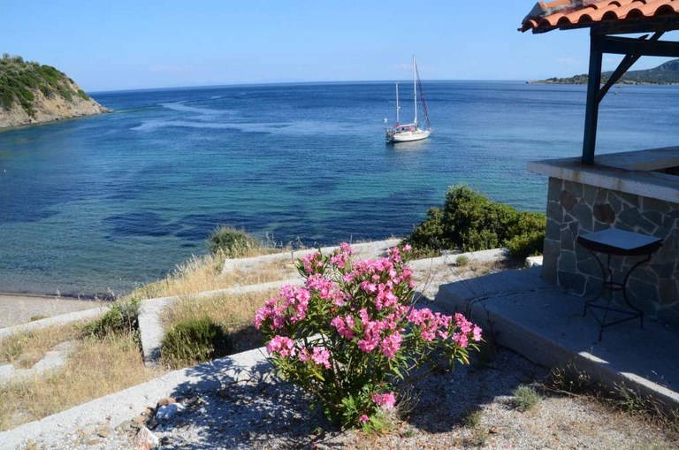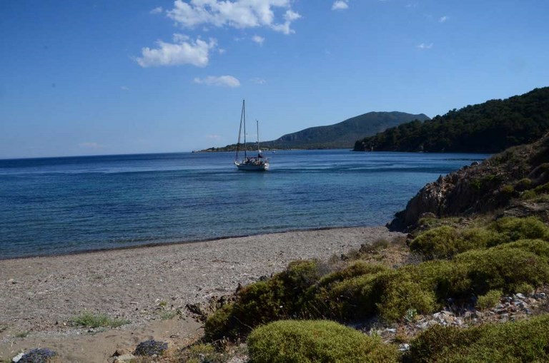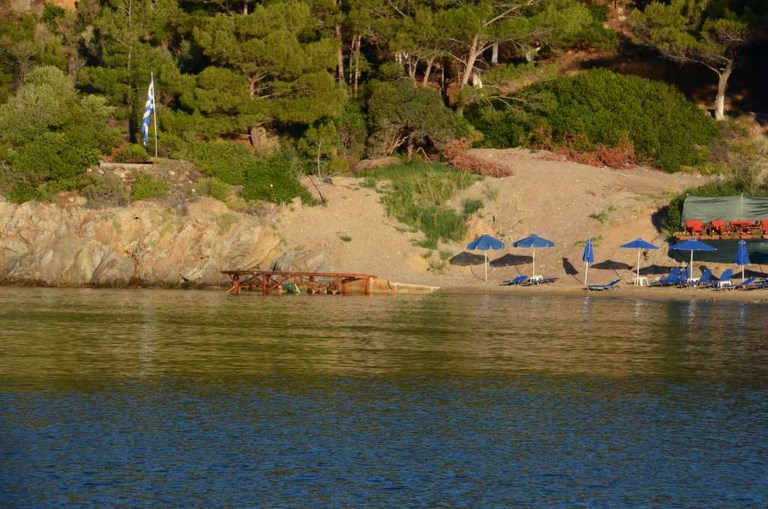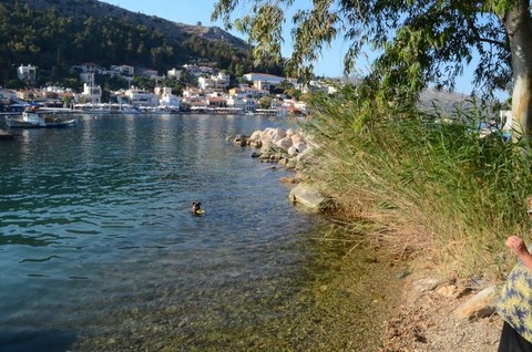 Nous avons passé trois jours à Kaloreyou, la jolie petite baie à l'entrée du chenal qui mène à Skala Loutra. Baignades et farniente.