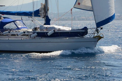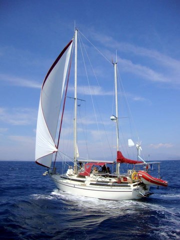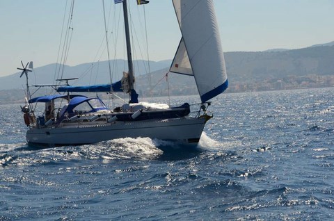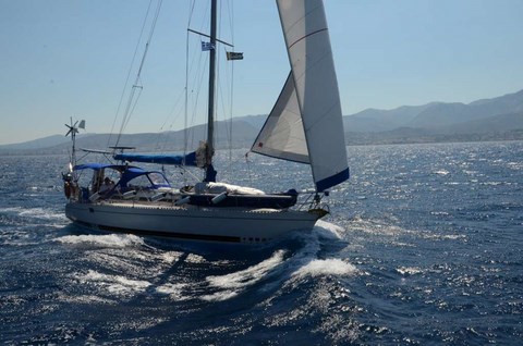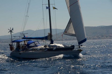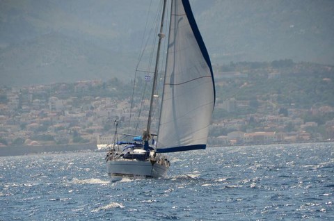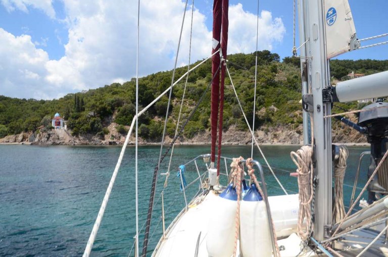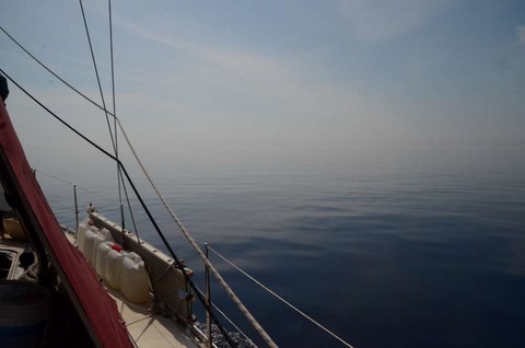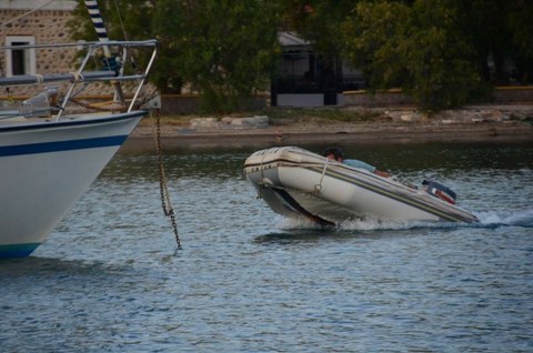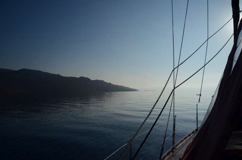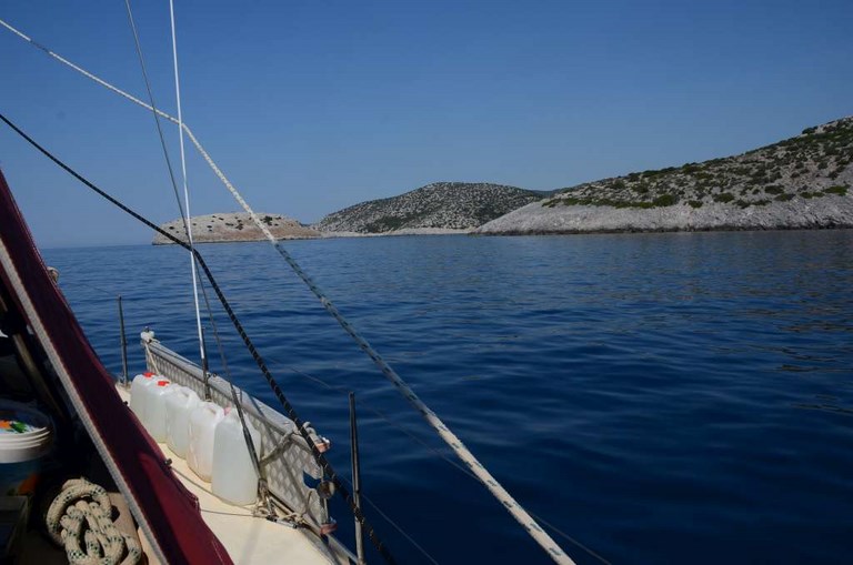 La nav de 12 milles entre Plomario et Skala Loutra fut commise entièrement au moteur: