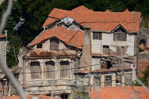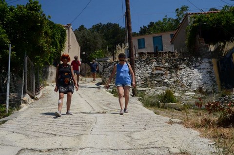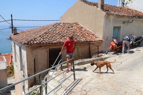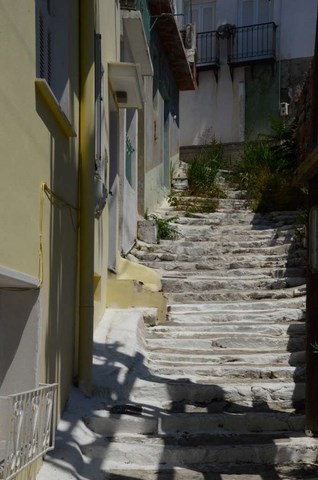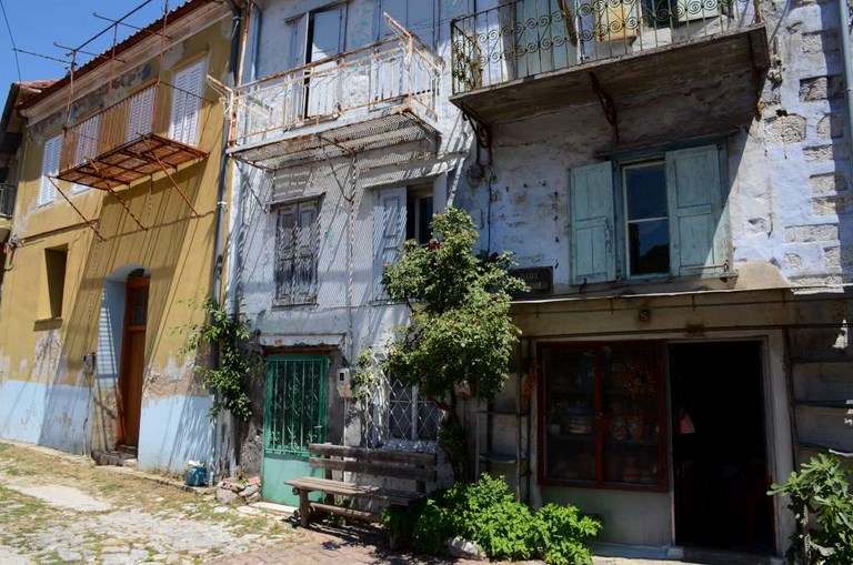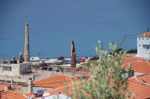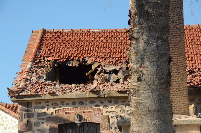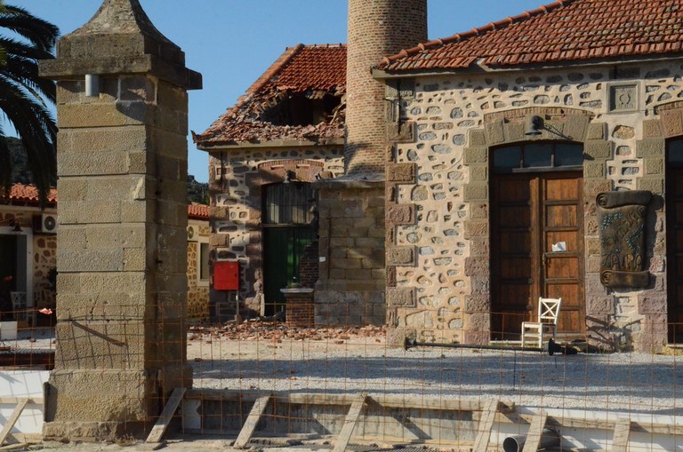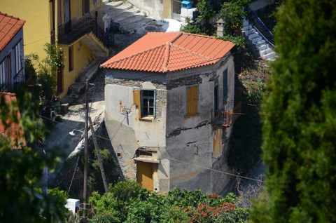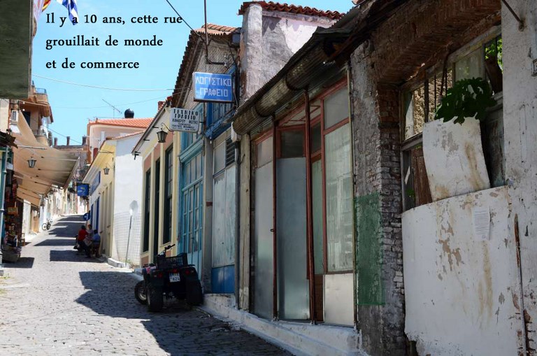 Car, si ici les dégâts ici furent peu importants, il n'en va pas de même à Plomarion, où nous étions il y a quelques jours, et surtout à Vrissa, un village dans les hauteurs, derrière Plomarion, détruit à 70% où une pauvre dame est décédée, écrasée par sa maiosn : Tremblement de terre en Grèce