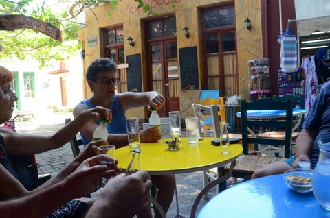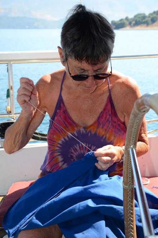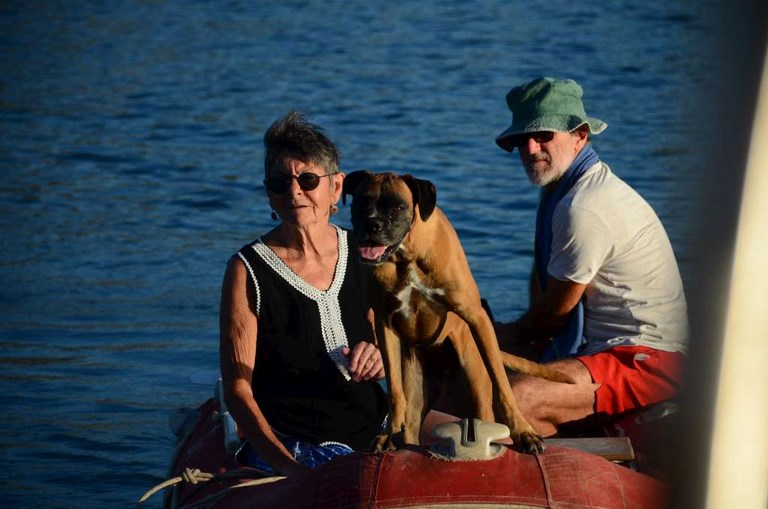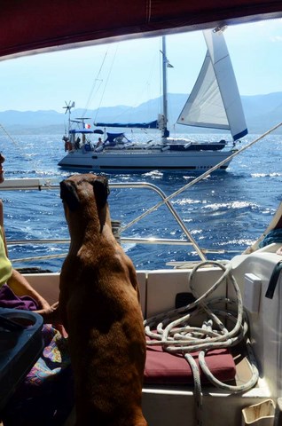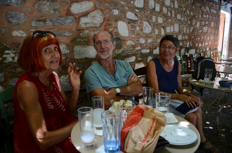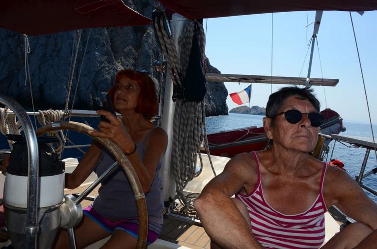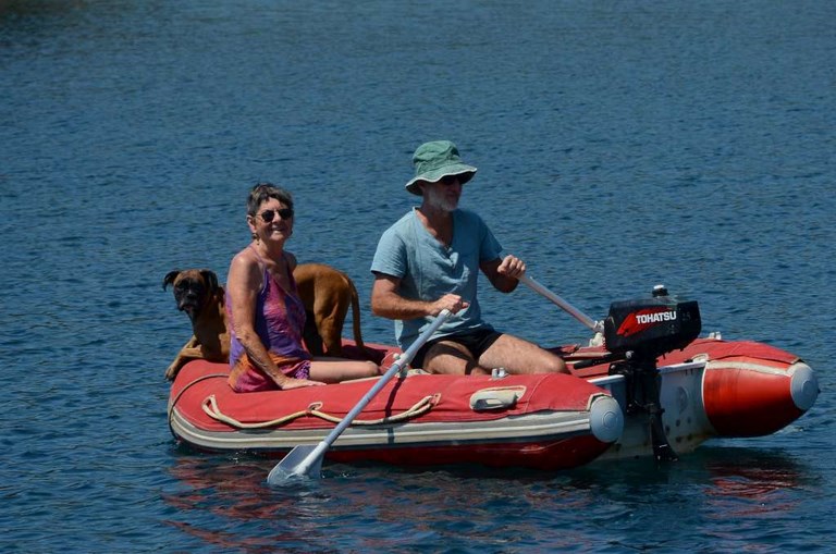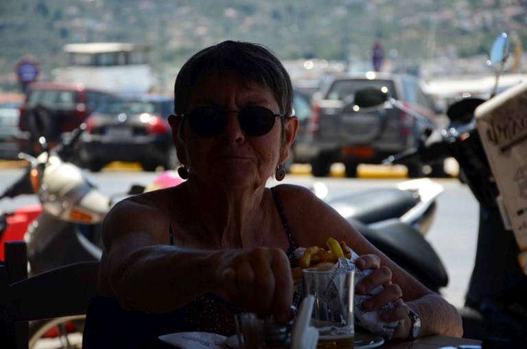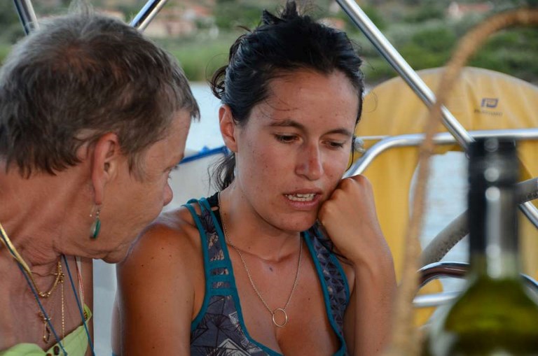 Et là, nous nous sommes tous retrouvés : Kairos, Deber, Fulmar et aussi Nicole et Pierre, sur Tawali, avec qui nous avons eu le plaisir de faire mieux connaissance. Ils sont super super tous les deux. Du coup, tout ce petit monde (!) s'est rapporché, et les rencontres se sont succédées à toute allure, à la taverna et sur les bateaux. Plutôt que de vous parler encore de tout ça, des apéros sur Troll, des repas sur Tawalli, sur Deber, , le mieux, c'est encore quelques illustrations: