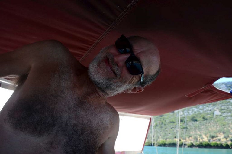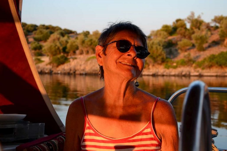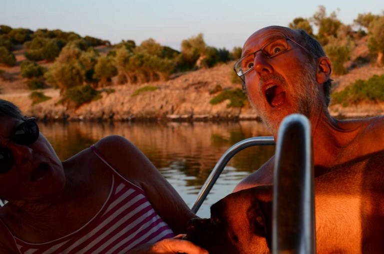 Pour finir, un petit inventaire à la Prévert en paroles et en photos de l'ambiance de ces quelques jours écoulés : De la baignade, de l'agneau, des dampfnudels ( en quantité) , des Barbaianis Blancs, verts, bleus, et noirs, du soleil (beaucoup), de la chaleur (forte), des rigolades, une soirée en réunion sur Deber ( ne le dites pas à Colllomb) , des jeunes et des moins jeunes, de la musique grecque en direct live (jusuq'à point d'heure), des allers retours en annexe, des farces, des protestations nikonesques, des discussions de quai, des apéros dînatoires et beaucoup, beaucoup d'amitié. (les 4 derniers portraits, très réussis, sont de ma Françoise) .