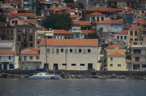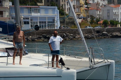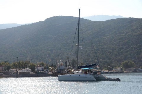 La météo ( qui va se tromper, mais baste) annonce tout bientôt du Nord. Du coup, on met dès le lendemain matin, cap sur Lesbos, où l'on va retrouver notre cher cata DEBER et son équipage.
